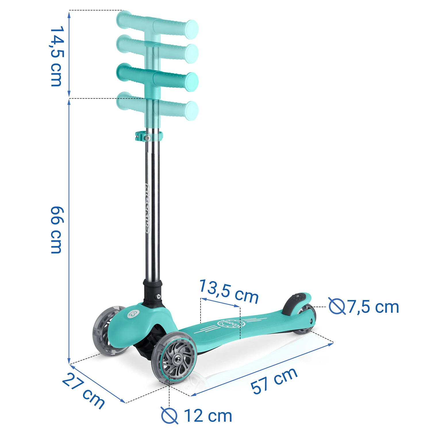 Самокат дитячий триколісний Ricokids Glow бірюзовий